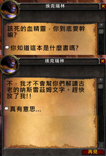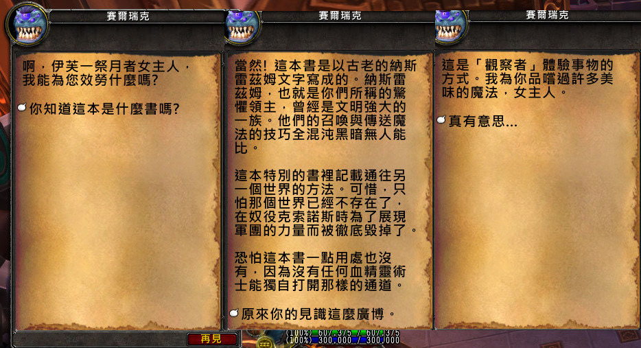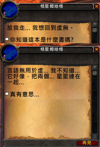 以下是各種惡魔的回答。因為我懶得轉惡魔,所以想看憤怒守衛、惡魔手衛的回答可看此篇:[閒聊] 術士綠火任務-不尋常的書冊 。此外,地獄火和恐懼守衛是不會有對話的。